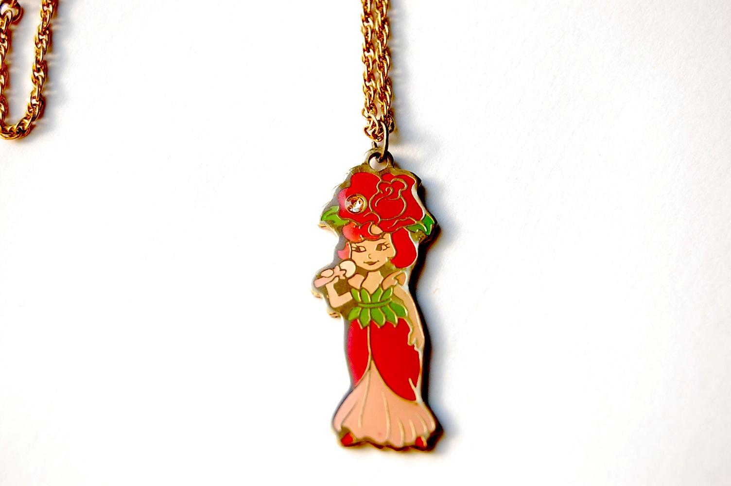 When I was about 8 years old, I saved up little rose coupons that came on the outside of the boxes of Rose Petal Dolls until I had enough coupons to send away for this necklace. It is still in pristine condition and hangs on my wall of jewellery I’ve created in my home.